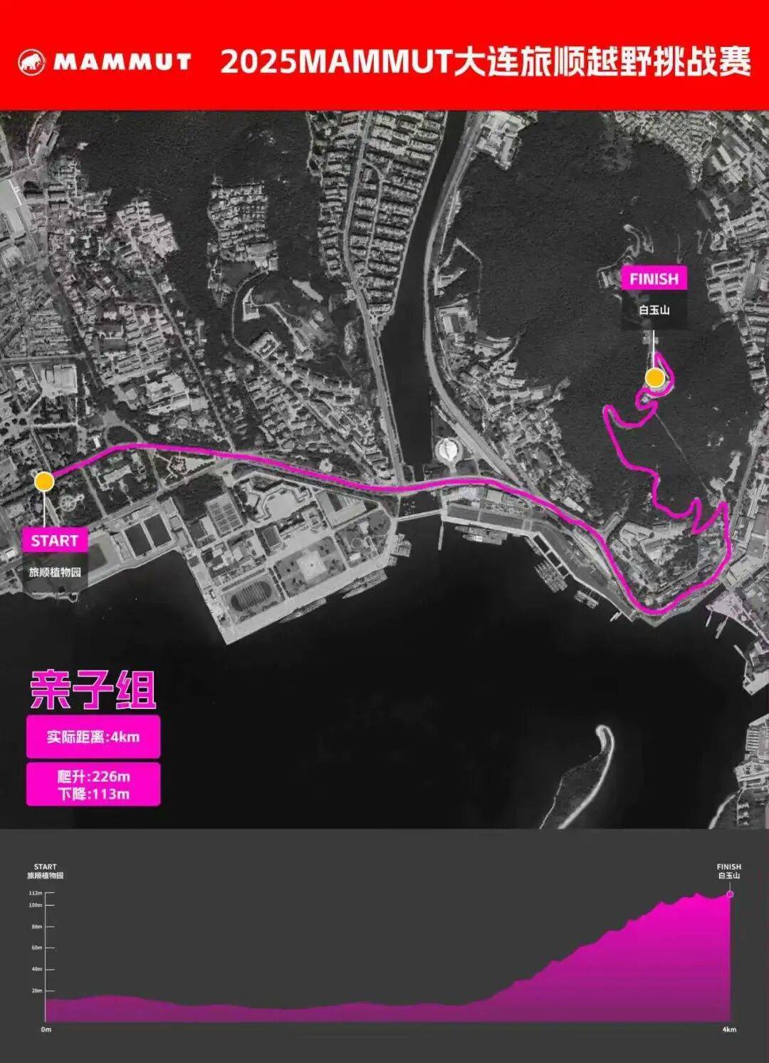 家庭、亲子组5公里:起点设在旅顺(博物苑区南门途径友谊路—黄河路—(旅顺火车站、军港游园)—白玉山路(上白玉山)—白玉山塔(终点)。