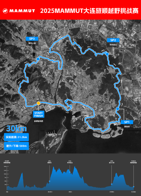 30公里赛道:起终点设在旅顺博物苑区南门途径友谊路—黄河路—(旅顺火车站、军港游园)—白玉山路(上白玉山)—(沿白玉山阶梯经白玉山隧道口下山)—长江路—黄金街—潜艇博物馆—泛海国际旅游度假区(规划建设中)—模珠街(右行)—圣北街—(距与旅顺南路交汇处20米)进入白银山—(下山入)鸡冠山路(右行)—东鸡冠山北堡垒遗址—望台炮台遗址—鸡冠山路—龙山路(小南村)—圣水街(左行)—轻轨旅顺站—(经营顺路进入)春城路—龙河西岸—经世贸国风龙院—五一路西一巷—寺沟路(右行)—(苏军烈士纪念塔)—闯关东影视基地—椅子山炮台—大案子山堡垒—革新街(左行)—新启街—中央大街—进入博物馆苑区(西门)—博物馆苑区(南门右行)—终点。