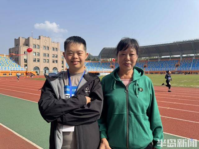 在跑道上,总能看到家属们陪伴的身影。23岁的王启超是智力残疾4级,当天陪在他身边的是妈妈朱美延。