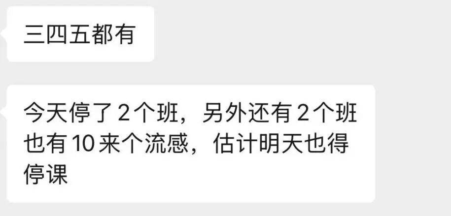 “三四五(年级)都有,今天停了两个班,另外还有两个班也有10多人得了流感。”