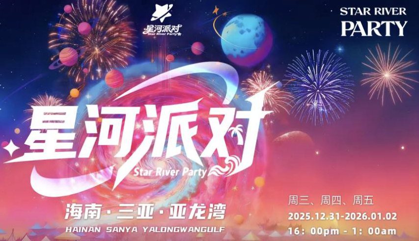 活动融合音乐、露营、市集与互动体验,在亚龙湾的夜幕下开启沙滩跨年“星”玩法,打造沉浸式社交体验。12月31日当晚特别设置整点倒计时跨年环节,以音乐盛宴迎接新年。
