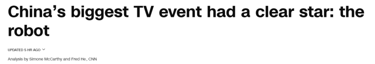 的报道则称,与往年一样,人形机器人表演再次成为春晚的焦点。此次演出展现出中国致力于研发由人工智能技术驱动的、更先进机器人的决心。