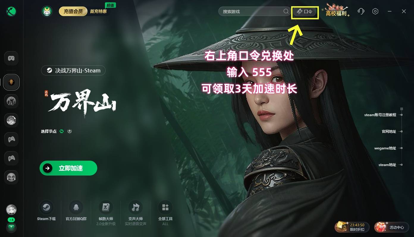 第一种解决方法为使用迅游加速器优化网络环境,网络传输不稳定是引发游戏报错、错误代码(尤其是网络类代码)的常见诱因,迅游加速器可通过专属节点路由优化游戏数据传输路径,降低丢包率与延迟波动。玩家需下载安装官方版迅游加速器后,在游戏列表中精准匹配《决战万界山》对应区服,点击启动加速功能,待加速成功后通过加速器内置入口或常规方式启动游戏即可,若加速后故障仍存在,可切换加速器内置的不同连接协议,适配多样化网络环境以进一步提升连接稳定性,从根源上规避网络层面导致的报错与黑屏问题。