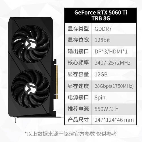 在科技创新的浪潮中,铭瑄RTX5060Ti引领着次世代显卡的性能。它搭载了最新的GDDR7显存,具备128bit的显存位宽,支持DLSS4技术,确保每一帧画面都栩栩如生,仿佛身临其境。这款显卡的核心频率高达2407-2572MHz,无论是激烈的游戏对战,还是复杂的视频渲染,都能轻松应对。